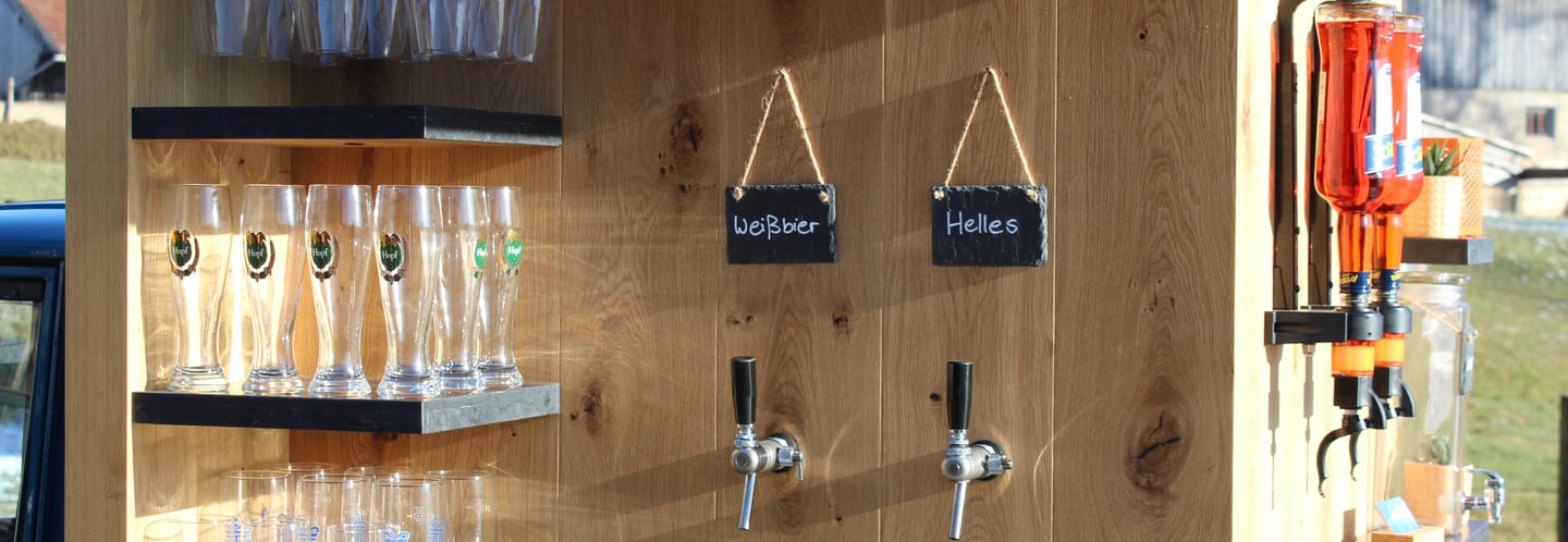 Die Getränke-Auswahl bleibt dir überlassen. Vom frisch gezapften Bier oder Secco aus dem Zapfhahn bis hin zu einem Aperol oder individuellem Getränke-Wunsch. Einfach Lieblingsgetränk anfragen!