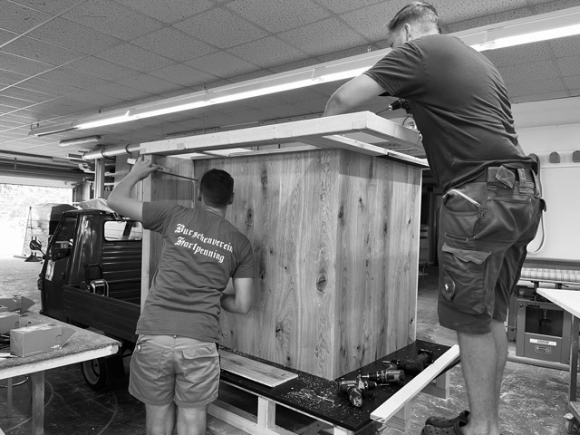 Im August 2024 ging’s los mit dem Umbau – natürlich mit viel Eigenleistung und Unterstützung von Schreiner Berni. Das große Ziel: Michis 30. Geburtstag! Und tatsächlich, im Januar 2025 war es dann soweit – das erste Bier wurde gezapft und 150 Liter Tegernseer flossen durch die Zapfhähne. Damit war klar, jetzt kann es so richtig losgehen!